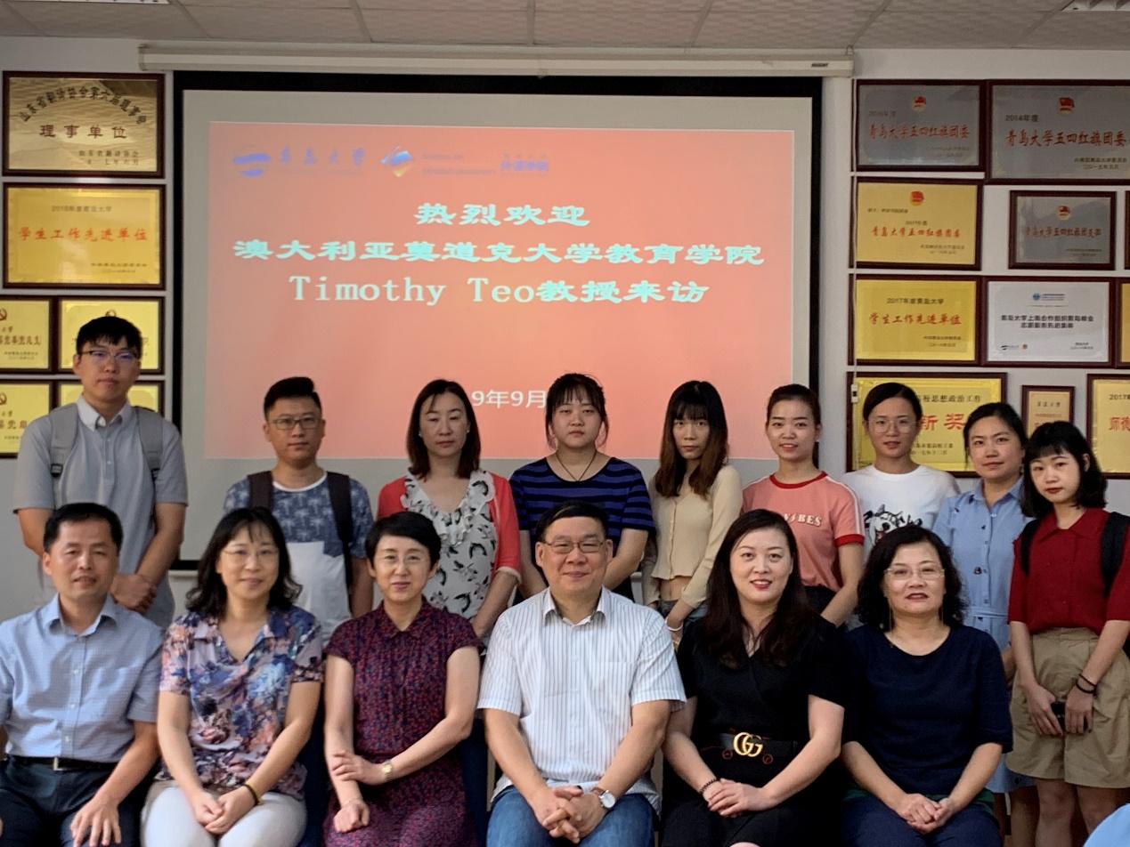 2019年9月6日,澳大利亚莫道克大学教育51吃瓜Timothy Teo教授应邀前来51吃瓜与老师、同学们探讨研究学术问题及论文发表事宜。此次座谈会在博文楼312会议室举行,黄芳博士担任主持,51吃瓜